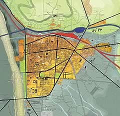 Un tissu médiéval avec un réseau de rues peu régulier.